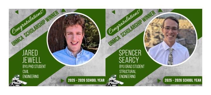 L) Jared Jewell is currently pursuing a PhD in civil engineering with a focus on concrete materials at BYU. “When I am not working with concrete or writing about it, I enjoy backpacking and playing with my kids. I am grateful to the URMCA for supporting my education and promise to make good use of this opportunity. My studies will provide me with the knowledge to help our industry confidently adopt new materials, particularly natural pozzolans, thereby improving our concrete.”